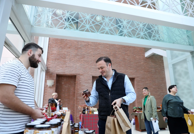 გამოფენაზე აფხაზეთიდან დევნილმა მეწარმეებმა მათ მიერ შექმნილი პროდუქცია წარმოადგინეს.