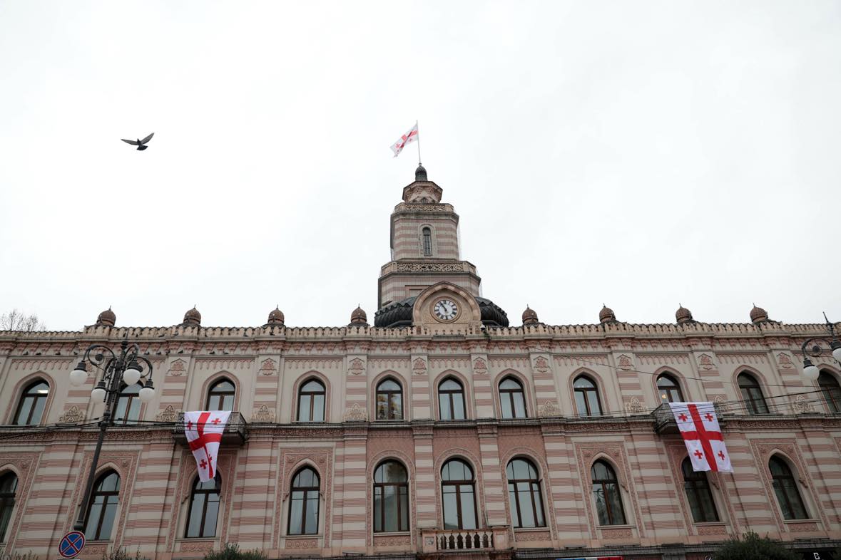 სახელმწიფო დროშის დღესთან დაკავშირებით, თბილისის საკრებულოს შენობიდან დროშები გადმოიფინა