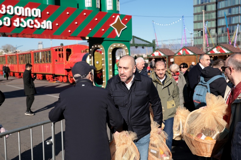 ზურაბ აბაშიძემ საკრებულოს წევრებთან ერთად რესპუბლიკის მოედანზე შეკრებილებს შობა მიულოცა და მეალილოეებს საშობაო ნობათი გადასცა.