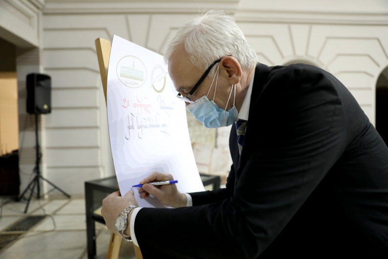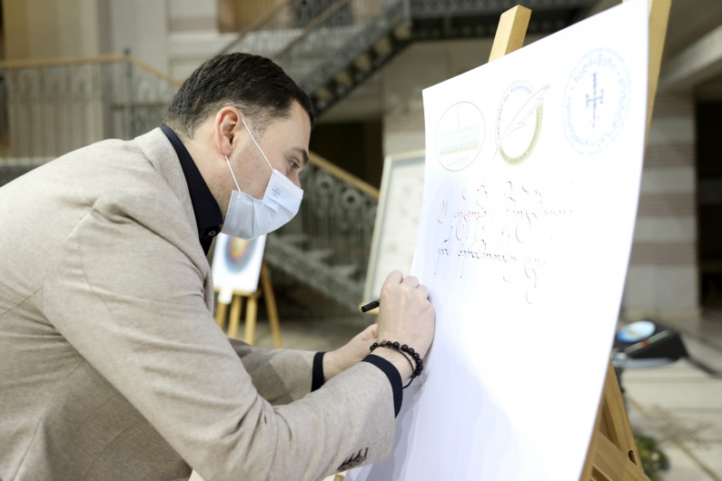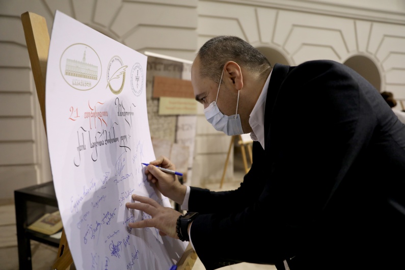 სამი კალიგრაფის, ლეილა ბაღბაიას, დავით მაისურაძის და ნინი იკაშვილის მიერ წარმოდგენილი იყო კალიგრაფიული ნამუშევრები და ბანერზე შესრულდა კალიგრაფიული წარწერა „მშობლიური ენის საერთაშორისო დღე“, რომელზეც საპატიო წევრებმა ღონისძიების ბოლოს ხელი მოაწერეს.