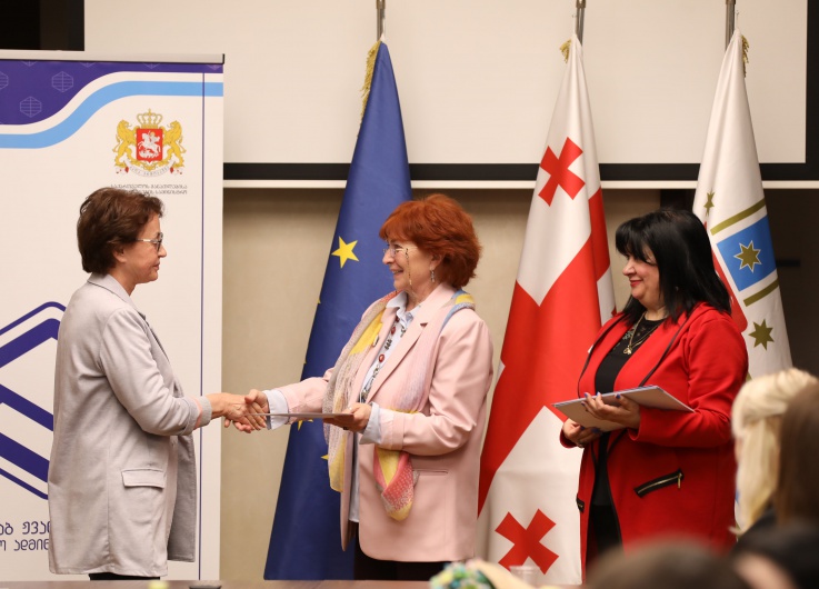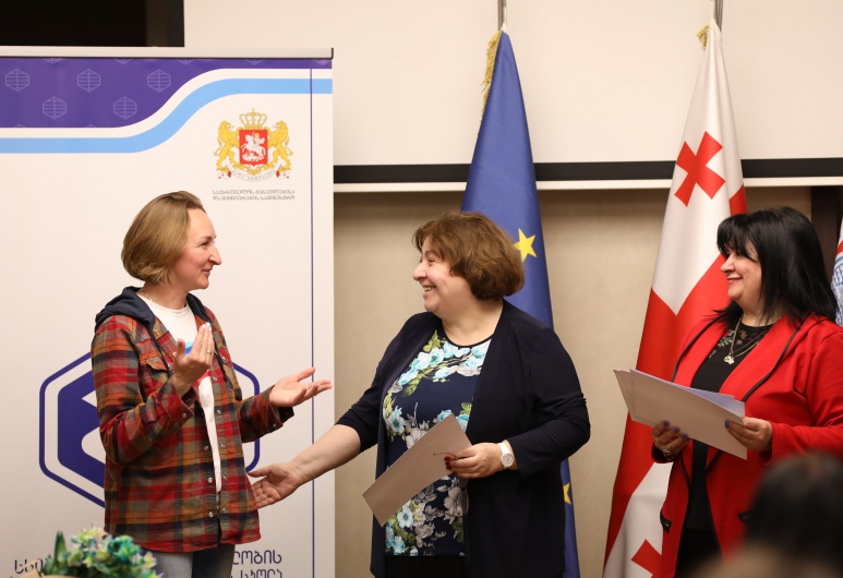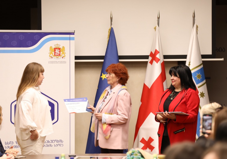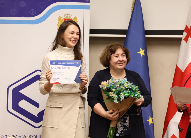 სერტიფიკატებით დაჯილდოების ცერემონიას კურსდამთავრებულებთან ერთად ზურაბ ჟვანიას სახელობის სახელმწიფო ადმინისტრირების სკოლის წარმომადგენლები და ტრენერები ესწრებოდნენ.