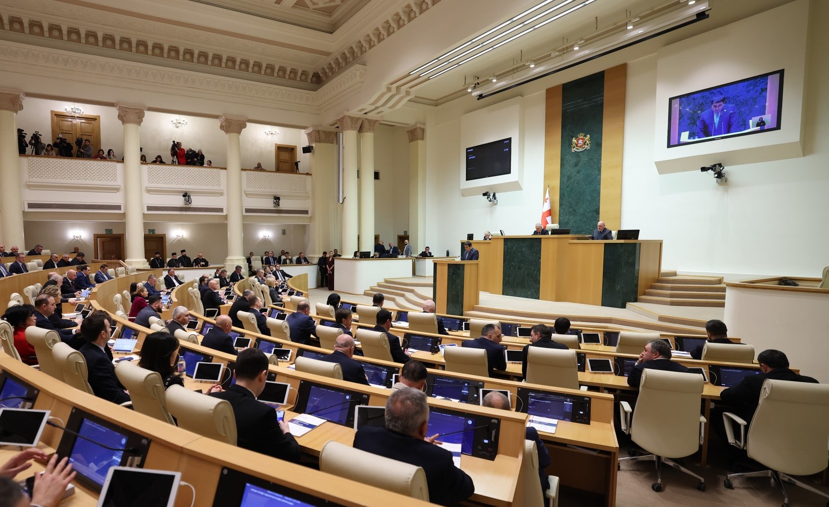 ზურაბ აბაშიძე პარლამენტის თავმჯდომარის შალვა პაპუაშვილის მიერ პარლამენტის საქმიანობის ანგარიშის წარდგენას დაესწრო