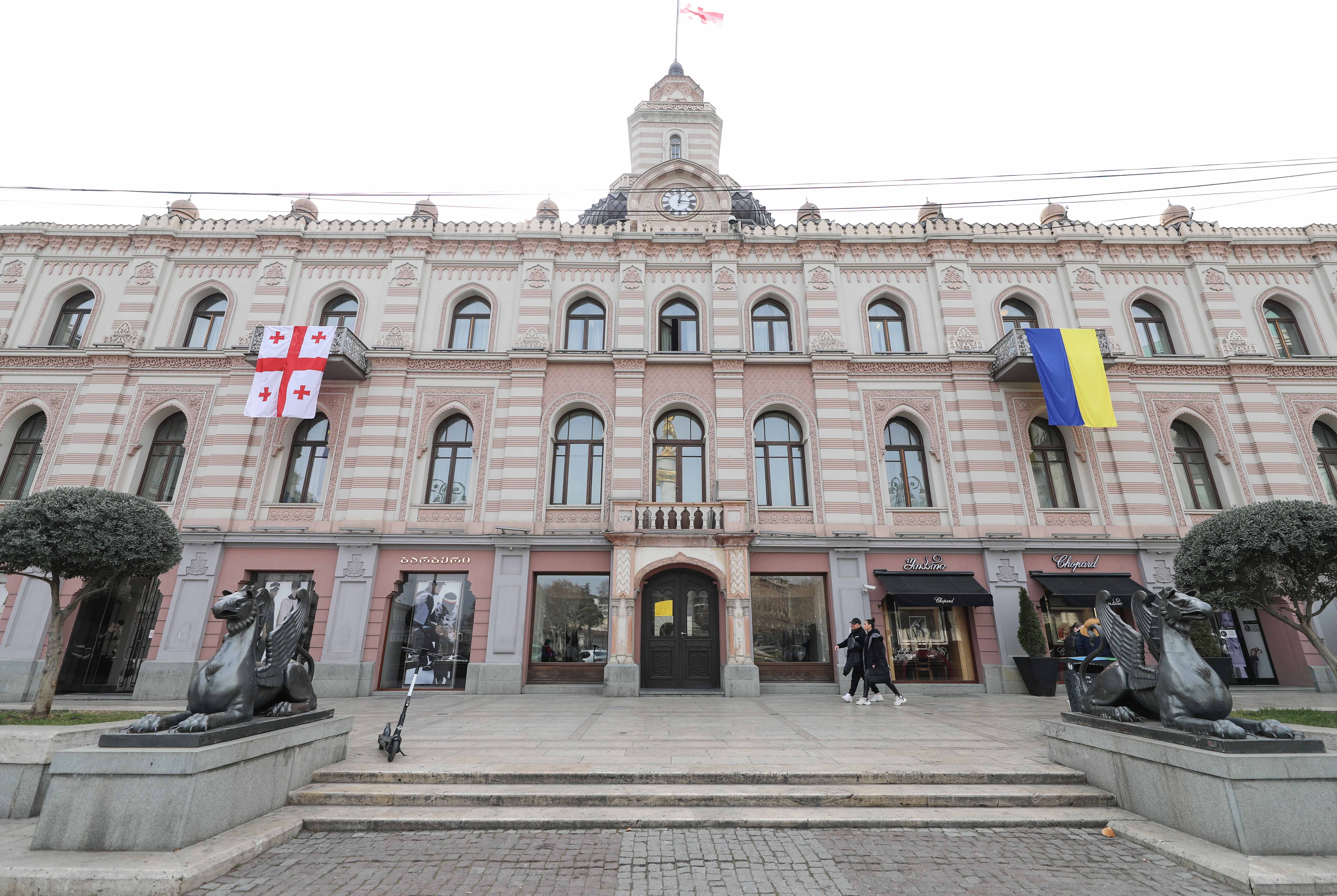 თბილისის საკრებულოს შენობაზე საქართველოსა და უკრაინის დროშები გადმოიფინა