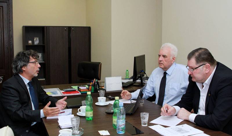 გოჩა ბაბუნაშვილი და ურბანული დაგეგმარებისა და საქალაქო მეურნეობის კომისიის წევრი, ფრაქცია ,,დემოკრატიული მოძრაობის’’ წარმომადგენელი შალვა ოგბაიძე დღეს თბილისის საკრებულოში ფრანგული კომპანია ,,სისტრა“-ს პროექტების მენეჯერ ჟან - მანუელ გიელსა და შპს ,,სპექტრუმის’’ ტრანსპორტის ექსპერტს გიორგი გიგაურს შეხვდნენ.